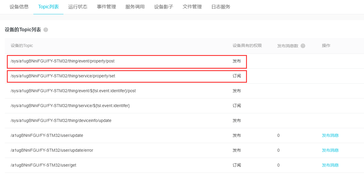 上面一个是设备发布的主题,下面一个是设备订阅的主题,把这个也复制到txt当中,看下摘录的信息: