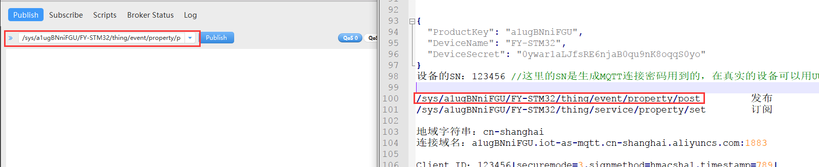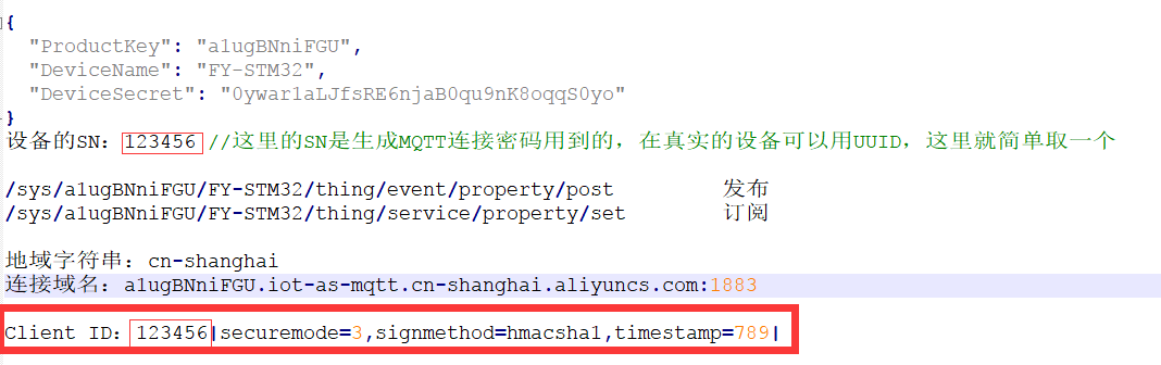 这里123456要注意,这个是阿里云规定的,是所属设备的唯一的标识。