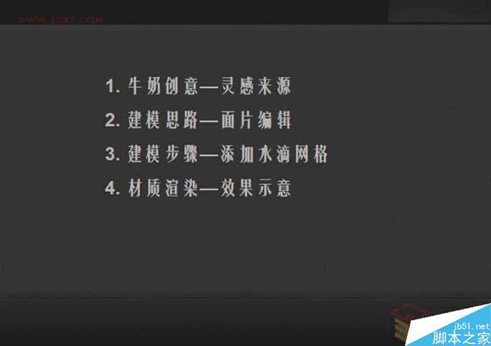 好了stop,养眼就到这里咯!下面开始今天的制作思路,其实也很简单,如图的转化过程,里面涉及到面片分段,按体积选择,二次弯曲,复合对象,水滴网格,噪波等等命令,都用过对伐?那么下面详解操作步骤吧!本人使用的是max 2009中文版和max 2014英文版,建议大家用2009制作,具体原因我也不知道O(∩_∩)O。