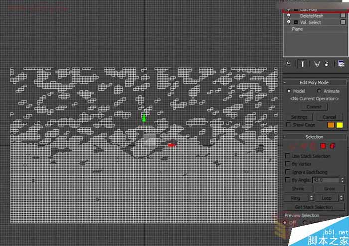 第五步:添加删除网格修改器就删除了我们之前体积选择好的面,大家可以想象一下渐变的效果。