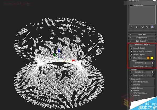 第九步:为了得到良好的细分效果,将刚才的盘状造型转为可编辑多边形,增加一次细分。