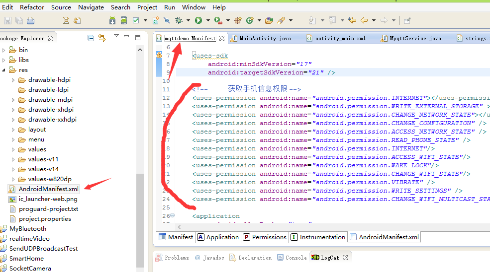 现在呢先写个程序获取手机的IMEI号,因为连接的时候每一个客户端的ClientID要求不能一样,咱就用IMEI号代表ClientID