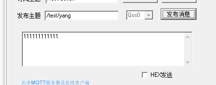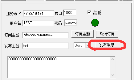 然后设置发布的主题是"/test/button"