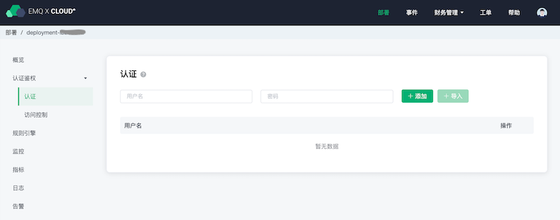 添加认证鉴权的过程非常简单,我们点击左侧菜单栏中的认证鉴权,此时会展开二级菜单,我们可以看到有两个栏目:”认证“与”访问控制“。