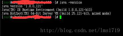 我们先在之前远程登录的界面命令提示行下输入“java -version”,查看当前服务器配置的Java运行环境。
