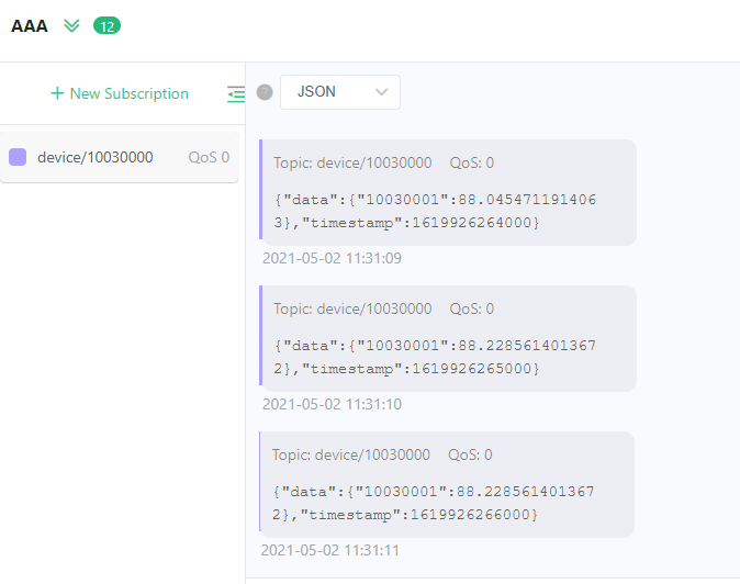 在这个主题下,订阅(subscribe)消息会定时返回: