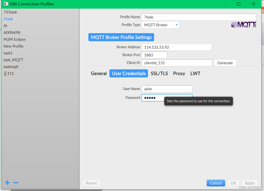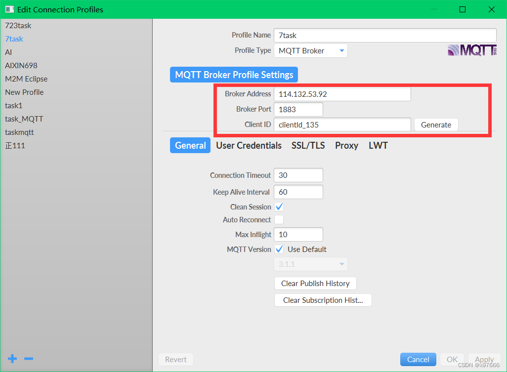 这里的连接服务器地址填114.132.53.92或者是你自己app中连接的地址,端口1883,clientld_ID可以自己填