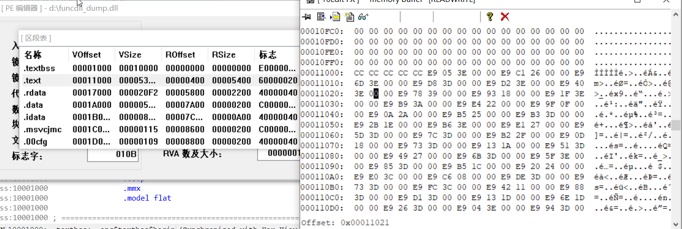 2、将文件偏移跟大小改成内存的(省事)
