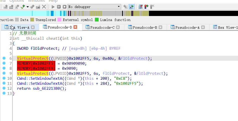 通过前面的作弊功能找到切入点VirtualProtect: