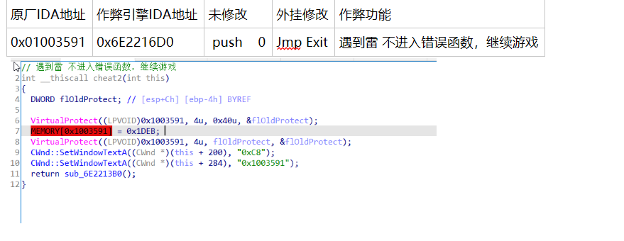 | 作弊引擎IDA地址 | 作弊功能 |