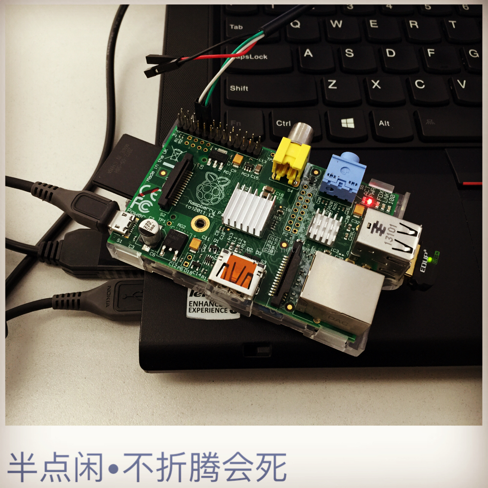 玩树莓派有一段时间了。平时通过PL2303串口线联接上去进行操作,我购买了个RTL8188CUS USB的无线网卡给它用于联网。PL2303串口线提供了电源输出接口,树莓派官方文档也声明支持串口供电。实际使用发现串口供电能加电启动系统,确无法加电驱动USB无线网卡。所以,只将PL2303的数据线联接到树莓派上用于通信,再单独用一根MiniUsb电源线给其供电。