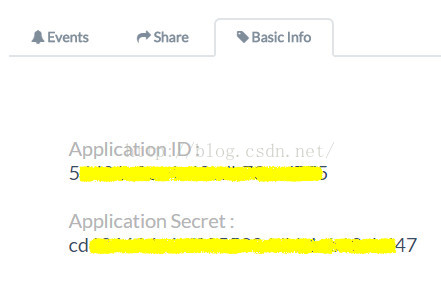 12.点击Basic Info标签,记下Application ID和Application Secret fields这两个字段的内容。在编写Shell代码时需要用到这些。当然,我把我的ID做了些处理。如图4。