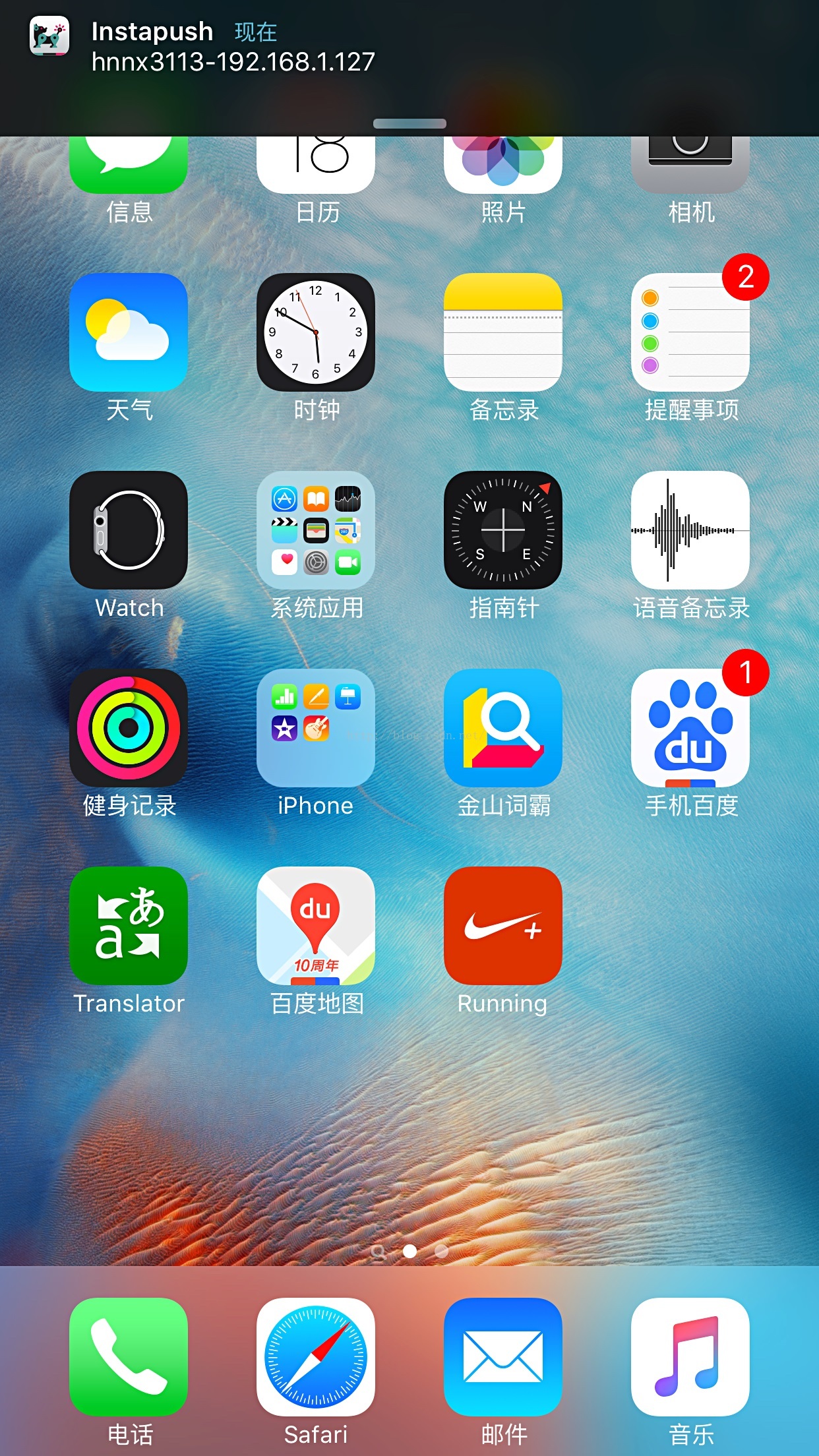 程序执行后。会将连接WIFI的ESSID名和分配的IP推送到你的手机上。如图5。