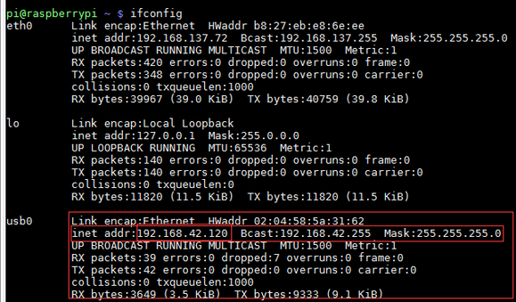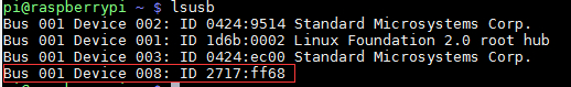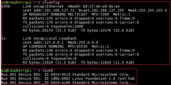 第三步:在树莓派上再次执行ifconfig和lsusb查看情况,如图