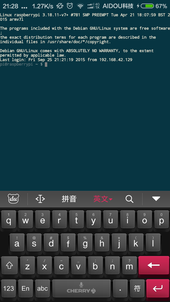 AiDou科技: 回复 妖尾111111 :这条命令要在树莓派运行的不是手机上哈2015-9-29 06:27 回复
