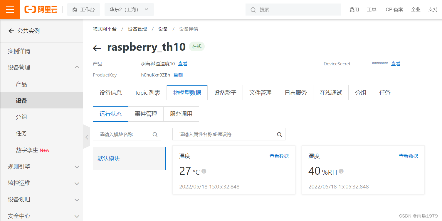 我是靠谱客的博主 隐形雪碧,这篇文章主要介绍实践总结:温湿度传感器DHT11 + 树莓派 + 阿里云物联网平台# 温湿度模拟器程序+阿里云物联网平台# DHT11采集程序,在树莓派运行# DHT11采集程序,对接阿里云物联网平台# 代码地址:,现在分享给大家,希望可以做个参考。