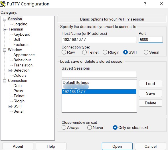 通过公网IP的6000端口,连接树莓派