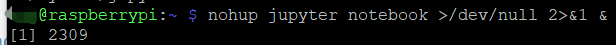 nohup jupyter notebook >/dev/null 2>&1 &