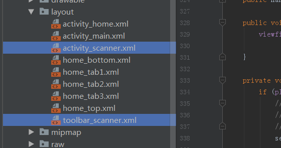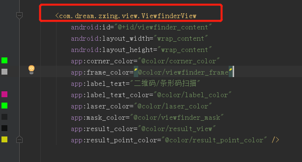 其中activity_scanner.xml中的ViewfinderView要修改包名为当前项目的包名,不然没办法正确调用到ViewfinderView.java