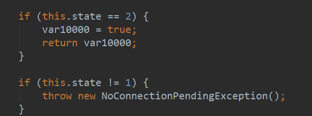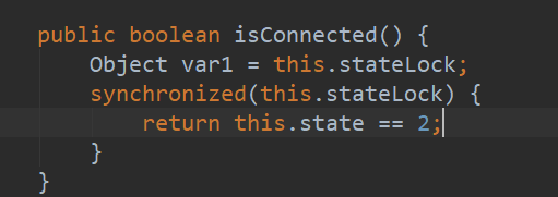 如果已连接(状态为2),则true;否则,如果不处于已连接状态,并且不是正在连接(pending),就会抛异常,然后其他情况旧放那会false