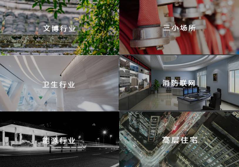 消防联网:消防物联网系统,每个区域都有消防局,消防局部署消防物联网系统 -> 实时调度,全局掌控