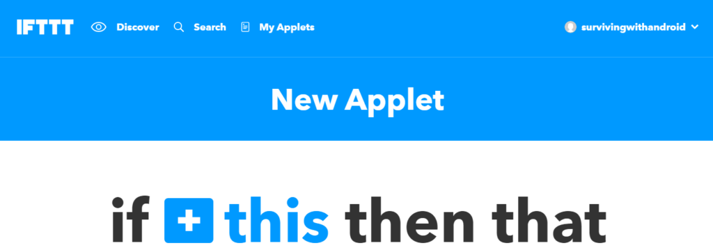 警报系统基于IFFT。 在完成有关Carriots的工作之前,配置IFFT很有用。 如前所述,我们希望在湿度达到阈值水平时发送一条短消息。 为了实现它,我们在IFFT中配置了一个短消息服务。 必须具有一个免费帐户才能完成此任务。 第一步,让我们创建一个新的Applet: