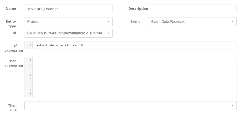作为监控数据系统,此物联网系统使用Carriots侦听器。 侦听器是分析输入值并应用特定规则的过程。 验证规则后,它将调用脚本。 关于Carriots的一个有趣的方面是,我们可以使用Groovy作为脚本语言来调用外部服务。