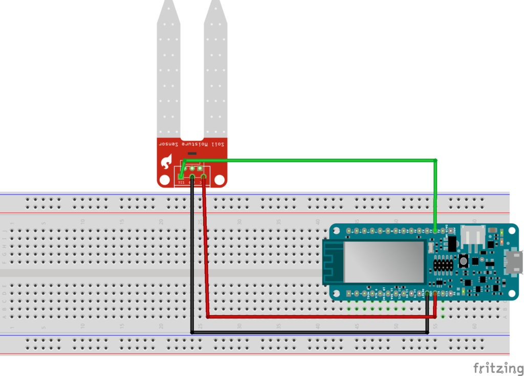 在第一步中,我们必须读取传感器数据。 该物联网项目使用YL-38 + YL-69传感器。 这是一个模拟传感器,可以插入我们要检查的土壤中。 下图显示了如何将传感器连接到Arduino: