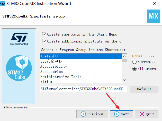 1 将我们下载的en.stm32cubemx_v6-0-1文件解压之后点击SetupSTM32CubeMX-6.0.1.exe可执行文件进行安装。