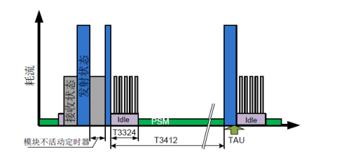 当模块处于PSM 模式时,将关闭连网活动,包括搜寻小区消息、小区重选等。但是T3412 定时器(与