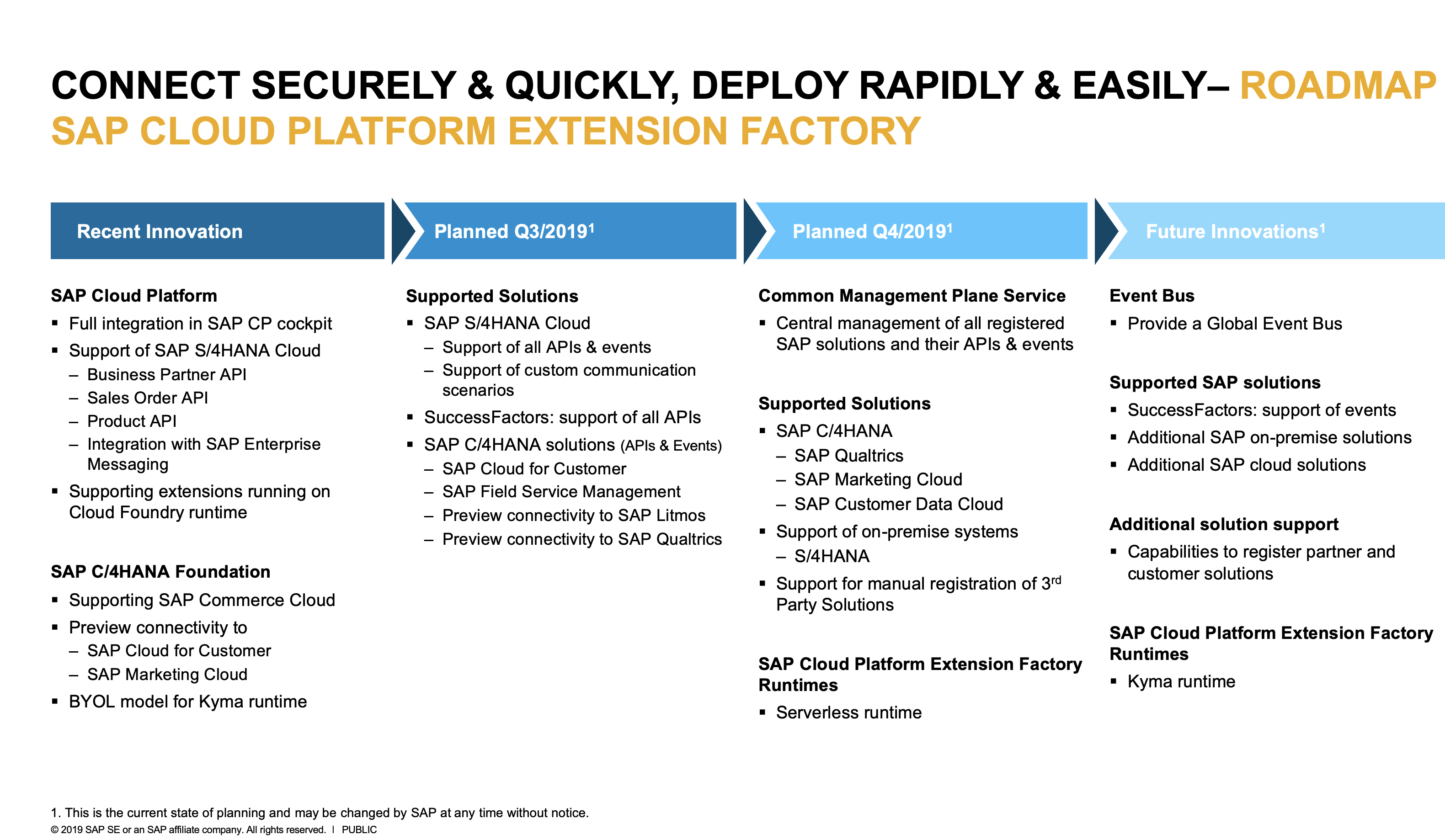 SAP官网上给出的SAP Cloud Platform Extension Factory演进的路线图:
