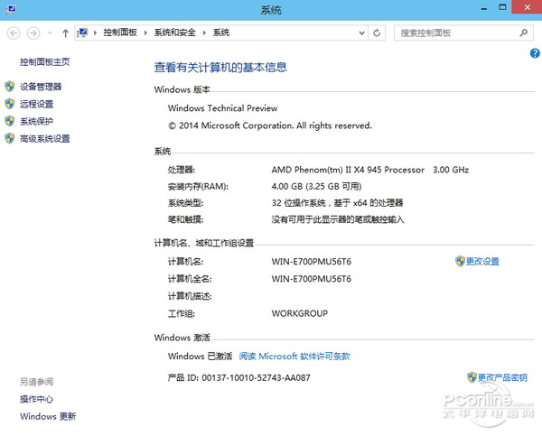 此次发布的Windows 10 技术预览版包括了简体中文,产品密钥为NKJFK-GPHP7-G8C3J-P6JXR-HQRJR,从密匙可以看到,传说中的Windows 10新的激活技术(在应用商店中无密匙在线购买激活)尚未启用。奇怪的是笔者无需输入密匙,安装好系统后联网就自动激活了。