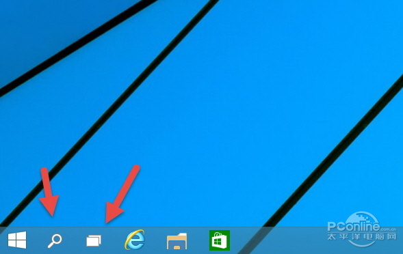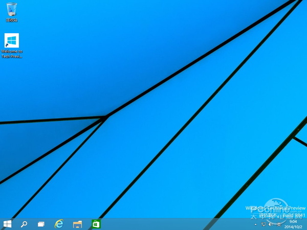 进入桌面后,笔者第一眼看到的就是那被改的有点丑的我的电脑及网络图标,还有就是桌面上多了一个Welcome to Tech Preview网页快捷方式,右下角当然有许多用户看不顺眼的技术预览版水印。任务栏则多了搜索及Task view按钮,这两个按钮强占了任务栏的前两个位置,不能移动和删除。