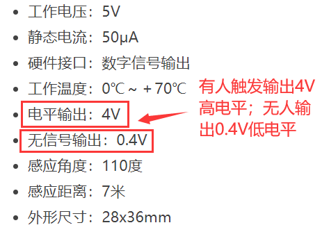 数字量输出类型传感器输出高、低电平信号表示检测状态。例如,人体传感器当有人经过时,数据端口会输出高电平,无人时输出低电平。
