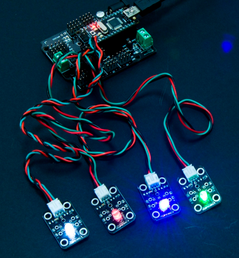 连线时需要将控制器SDA、SCL和传感器SDA、SCL对应连接,连线效果如下所示: