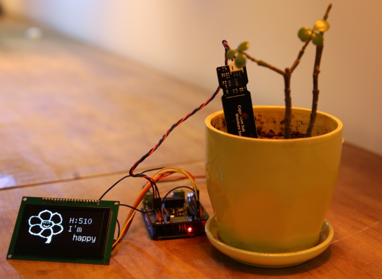 模拟量电压类型传感器会随着被检测物体状态变化,输出规定范围内的模拟电压。例如:电容式土壤湿度传感器,随着土壤湿度的变化,会输出0~3V的电压,将土壤湿度传感器插入干燥的沙土,输出约为3V电压,插入湿润的沙土输出约为1.5V左右电压,插入非常潮湿输出约为0V电压。
