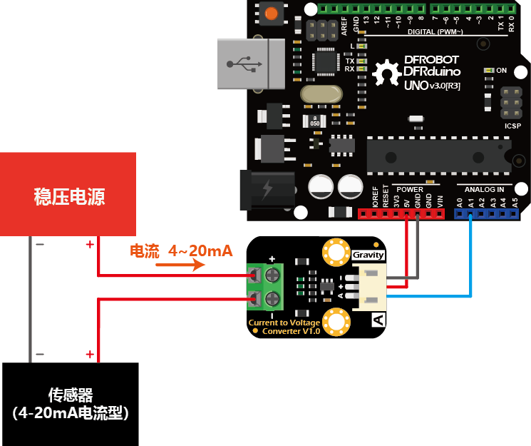 需要注意,绝大多数控制器是无法直接输入电流信号的,需要将模拟电流信号转换为合适范围的模拟电压信号,将控制器端口配置为ADC模式,采集传感器输出的模拟电压数据。