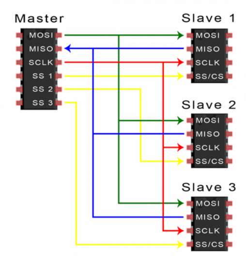 SPI是串行外设接口(Serial Peripheral Interface)的缩写。是一种高速的,全双工,同步的通信总线。它以主从方式工作,这种模式通常有一个主设备和一个或多个从设备,需要至少4根线,事实上3根也可以(单向传输时),如下所示: