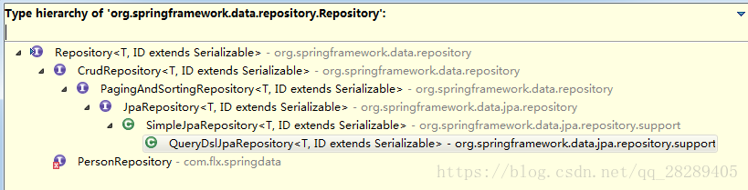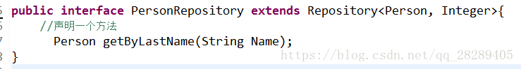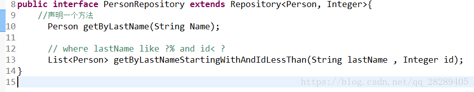 3、实际上,也可以通@RepositoryDefinition(domainClass=Person.class,idClass=Integer.class) 注解来代替 extends Repository<Person, Integer>