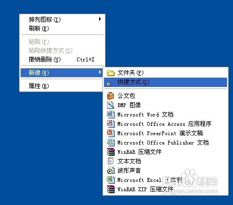 在桌面空白处鼠标右键,指向“新建”,在子菜单点击“快捷方式”