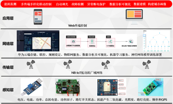 (3)应用层由开发者设计应用程序(手机应用和PC应用),通过云平台实现路灯节点传感信息获取和节点状态联动控制,部署云端训练的机器学习模型,构建路灯节点运行状态城市画像。