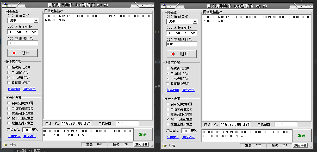 示例:2140:0000:0000:0100(简写2140::100)发送心跳包,密码是字符串:“123”