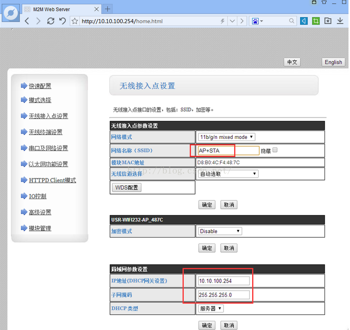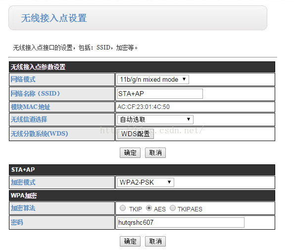 然后再次设置模块的STA模式。电脑连上模块的ap,进入模块的设置网页。