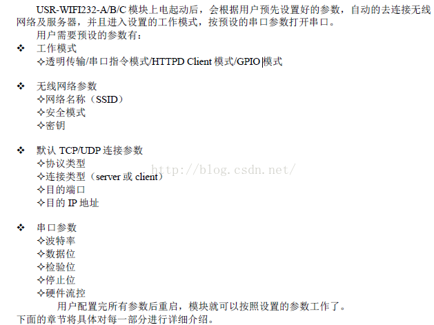 默认的USR-WIFI232-2b模块上电后的启动配置: