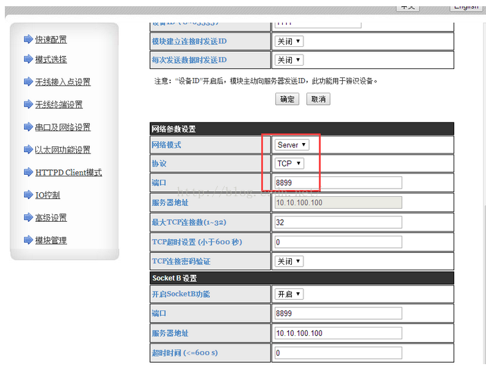4:设置模块的网络协议:TCP Server
