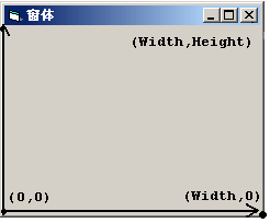 其中,参数X,Y指定了视见区域的左下角在窗口中的位置,一般情况下为(0,0),Width和Height指定了视见区域的宽度和高度。注意OpenGL使用的窗口坐标和WindowsGDI使用的窗口坐标是不一样的。图3.1-1表示了在WindowsGDI中的窗口坐标,而图3.1-2则是OpenGL所定义的窗口坐标。
