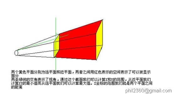 及-far等值就可以确定红色的可视区域了,这也就构成了glFrustum函数的几个参数。