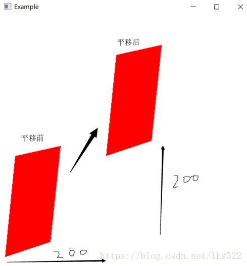对一个四边形进行平移,平移量自己输入,结果图平移量为(200,200),代码: