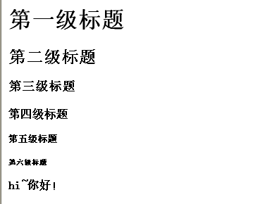 我们在撰写 Word 文档的时候,常常会使用标题,如 “第一章”、“1.2.1” 等。在 XHTML 语法中也有标题这个概念。 在 XHTML 中定义了 6 级标题,分别是 <h1> 到 <h6> :