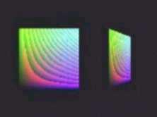 以上程序运行结果是将一块纹理映射到两个正方形上去。这两个正方形都是按透视投影方式绘制,其中一个正对观察者,另一个向后倾斜45度角。图形的纹理是由函数makeImage()产生的,并且所有纹理映射的初始化工作都在程序myinit()中进行。由glTexImage2d()说明了一个全分辨率的图像,其参数指出了图像的尺寸、图像类型、图像位置和图像的其它特性;下面连续调用函数glTexParameter*()说明纹理怎样缠绕物体和当象素与纹理数组中的单个元素(texel,暂称纹素)不能精确匹配时如何过滤颜色;接着用函数glTexEnv*()设置画图方式为GL_DECAL,即多边形完全用纹理图像中的颜色来画,不考虑多边形在未被纹理映射前本身的颜色;最后,调用函数glEnable()启动纹理映射。子程序display()画了两个正方形,其中纹理坐标与几何坐标一起说明,glTexCoord*()函数类似于glNormal*()函数,不过它是设置纹理坐标,之后任何顶点都把这个纹理坐标与顶点坐标联系起来,直到再次调用 glTexCoord*()改变当前纹理坐标。